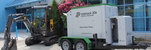 Voltstack mobile electric equipment chargers offer a versatile solution for on-site power at construction sites. The Voltstack e-Charger provides a range of charging solutions—it can serve as a silent, emission-free onsite power source, or (if necessary) it can be paired with a fossil fuel generator. The Smart Hybrid feature allows the Voltstack e-Charger to intelligently activate or deactivate a diesel generator based on the state of charge of the e-Charger.