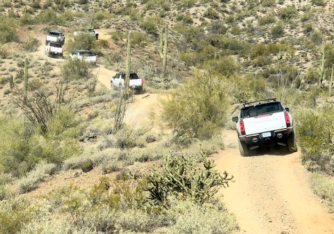 When negotiating a tight off-road corner in a conventional 4X4, a calculation is made if a three-point turn is needed, or needing to climb over a sharp rock outcropping may be necessary. In our time traversing steep, rutted, rocky and dusty trails, the all-wheel steering makes it possible to turn through a corner, using the front wheels as the guide, with the rear wheels turning at the same angle. Looking in the side rearview mirrors and seeing the wheels steering and the tail of the truck following along, is a trip.