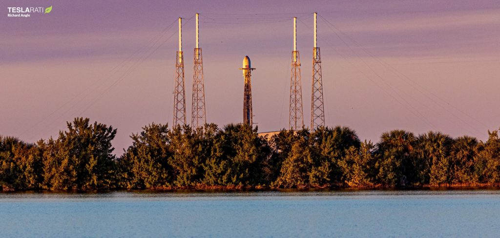 Falcon 9 B1052 stands vertical shortly before its fourth scrubbed launch attempt. (Richard Angle)