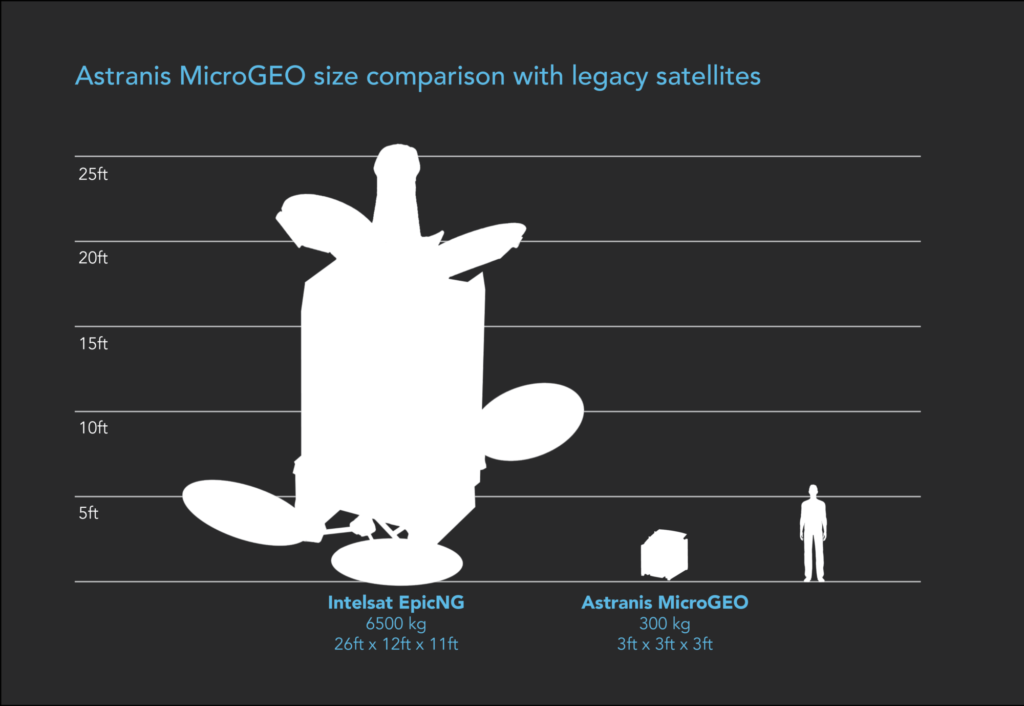 Astranis’ “MicroGEO” offering compared beside one of the largest geostationary satellite buses. (Astranis)